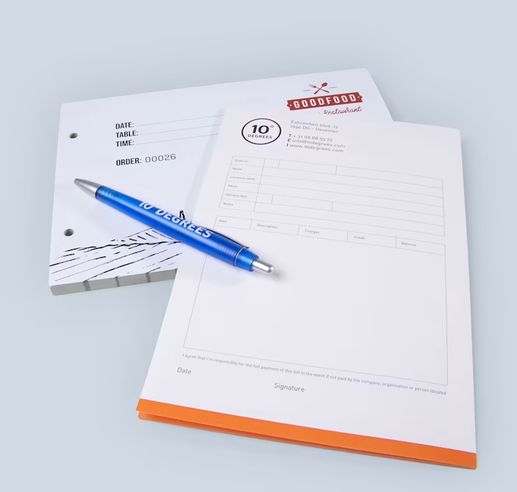 Elke bon, order of werkrapport is een kans om jouw merk te laten zien. Met bedrukte doordruksets zorg je dat jouw logo, bedrijfsnaam of huisstijl op elk exemplaar duidelijk zichtbaar is. Laat jouw doordruksets lijmen in blokken van 25 of 50 sets en kies het aantal doorslagen dat je nodig hebt. Elke kopie kan in een andere kleur, zodat je direct overzicht houdt in je administratie. Gebruik de sets als werkbon, afleverbon of kassabon.